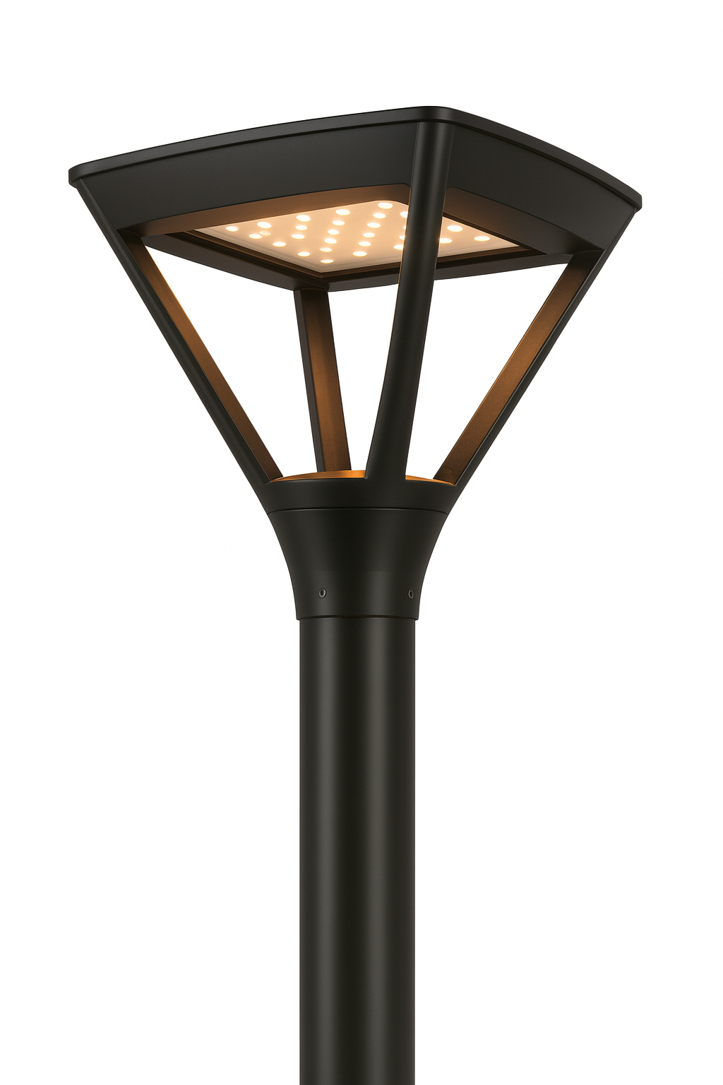 Light is a premium square-shaped post top light. It features a die-cast aluminum body with powder coating and electrostatic spray lacquer