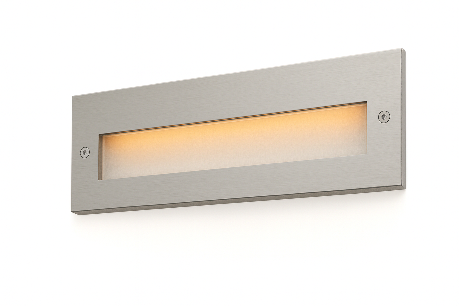body, a stainless steel 316 frame, a tempered frosted glass diffuser, and a polypropylene housing for recess. It includes a moulded